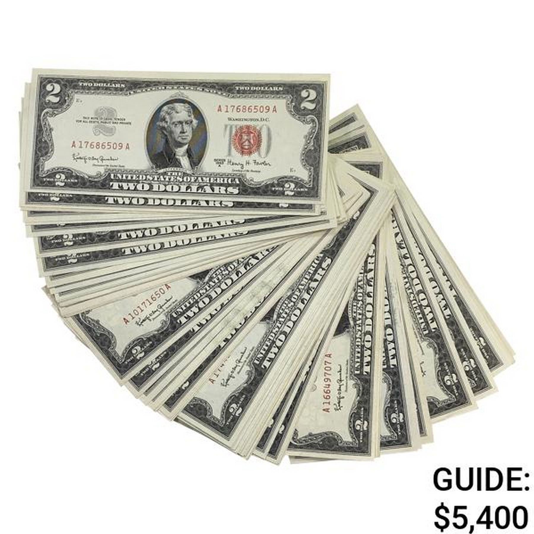 PACK OF (100) 1963 $2 LEGAL TENDER RED SEAL GEM