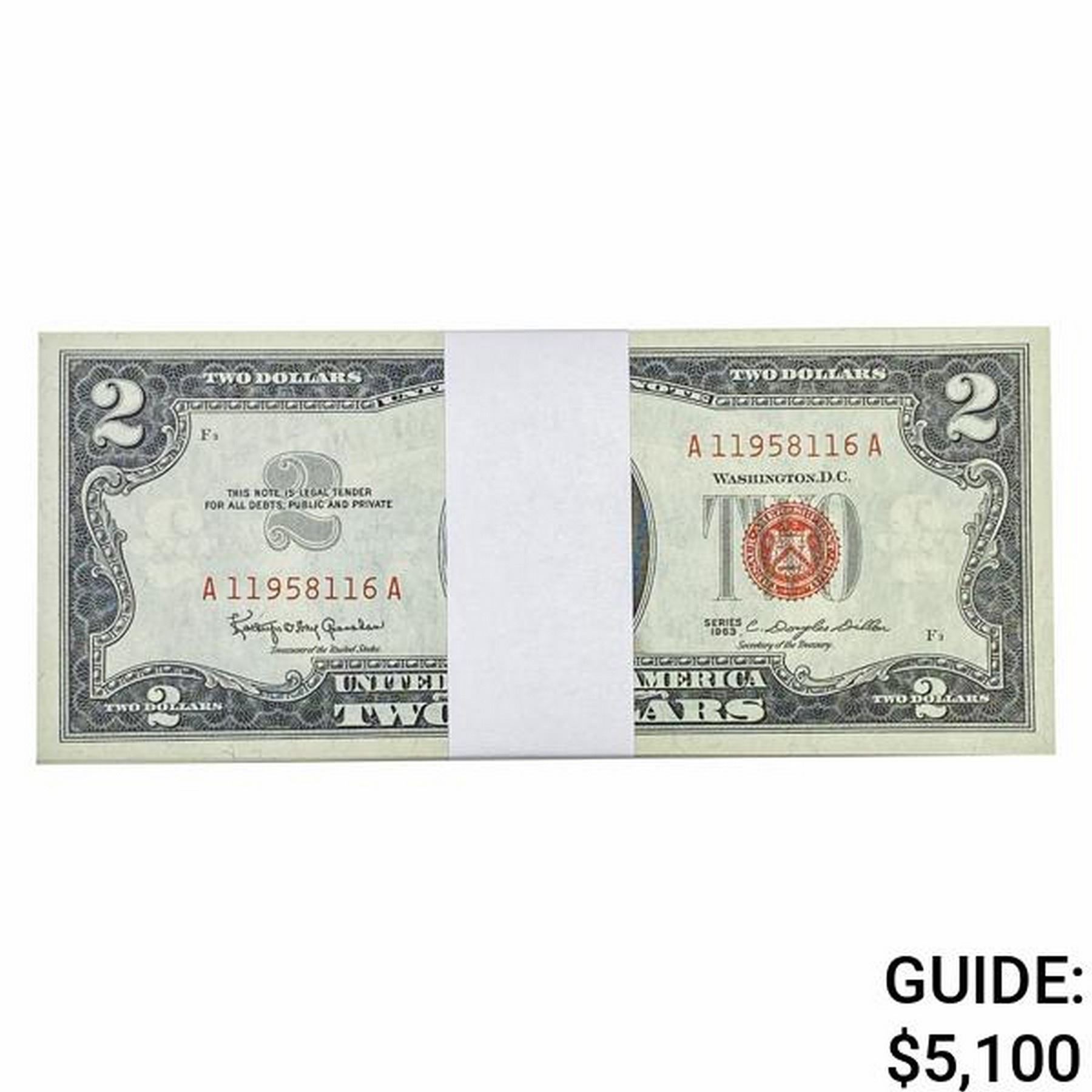 PACK OF (100) 1963 $2 LEGAL TENDER USN'S GEM UNC