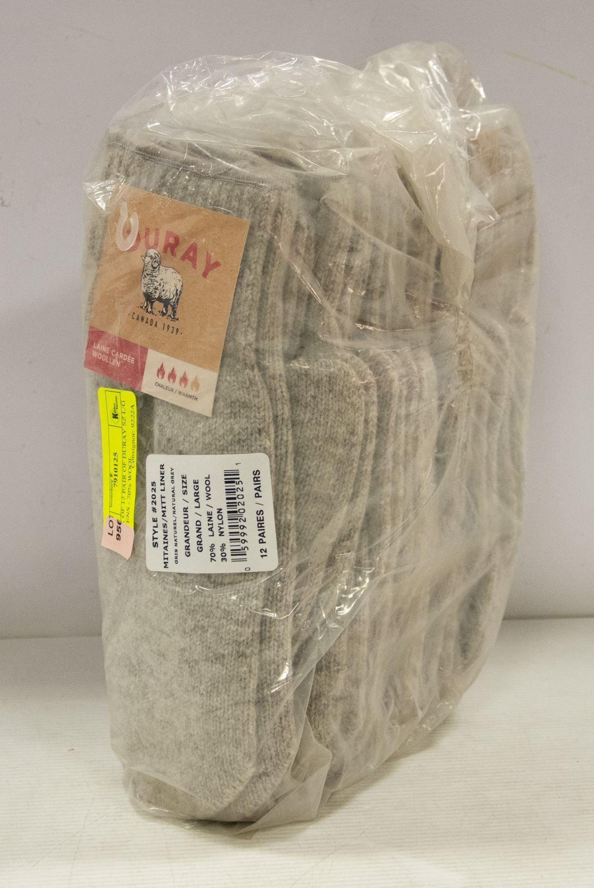 PACK OF 12 PAIR OF DURAY SZ L/G MITTENS - 70% WOOL