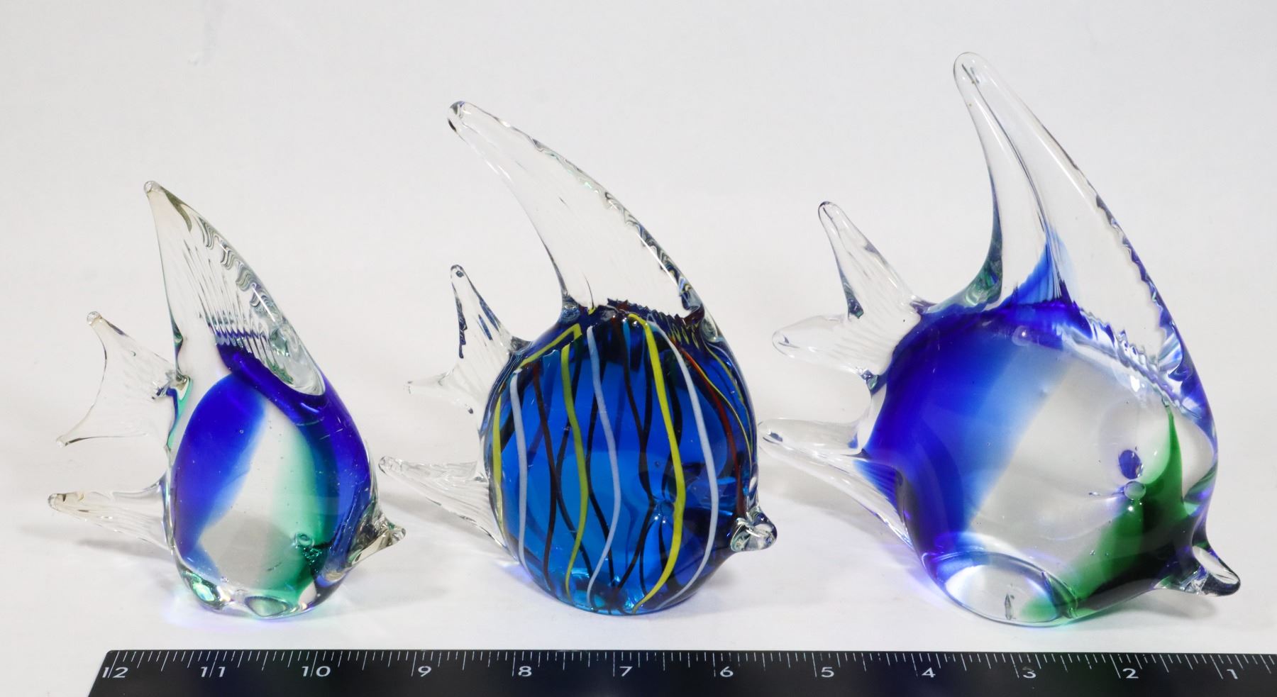 ONE MEDIUM BLUE AND GREEN. ONE MEDIUM BLUE/BROWN/YELL/WHITE. ONE SMALL BLUE AND GREEN.