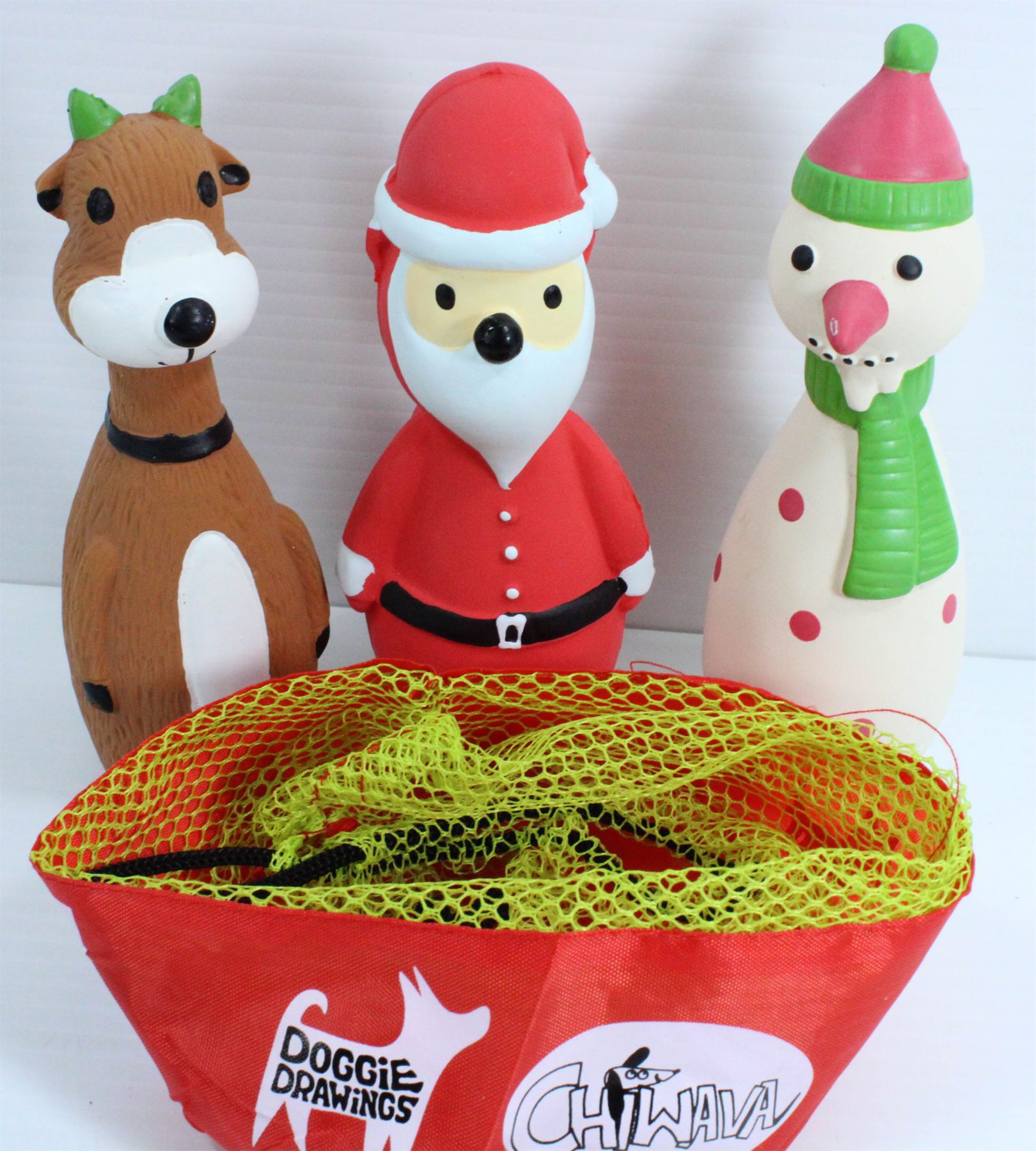 PACK OF 3 RUBBER CHRISTMAS SQUEEKER DOG TOYS