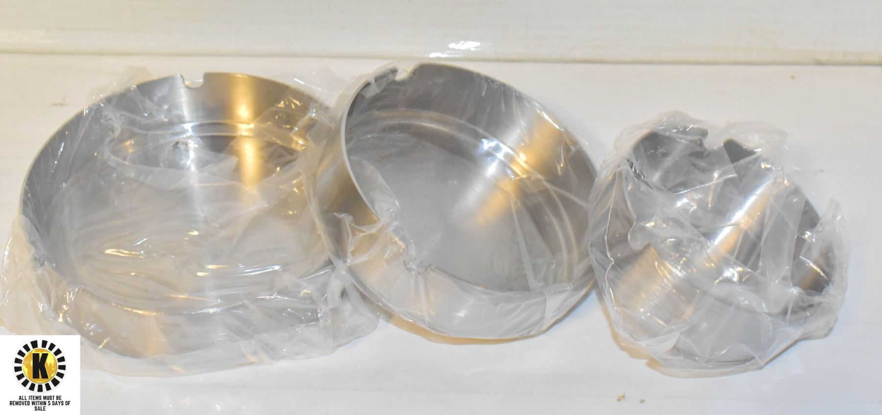 PACK OF 3 STAINLESS ASHTRAY TABLETOP ROUND – NEW