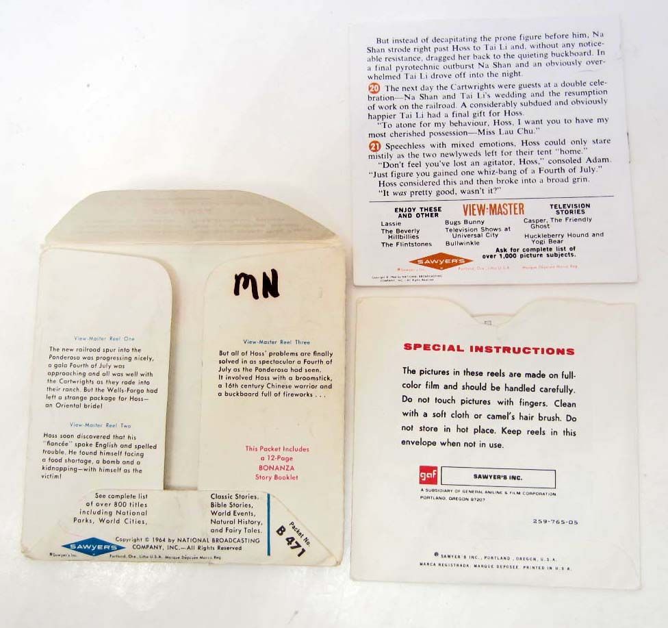 PACK OF 3 VINTAGE "BONANZA" VIEWMASTER REELS