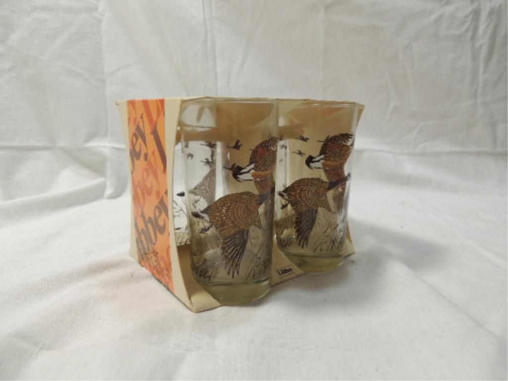PACKAGED SET 4 VINTAGE GOOSE PICTURE LIBBEY GLASSE
