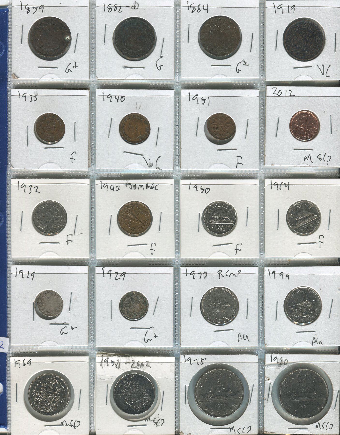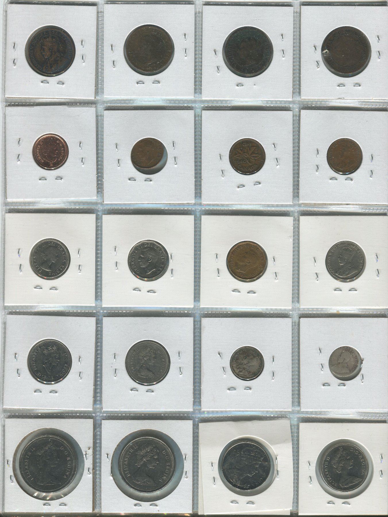 PAGE OF 20 ASSORTED COINS (CANADIAN) *1859-1980*