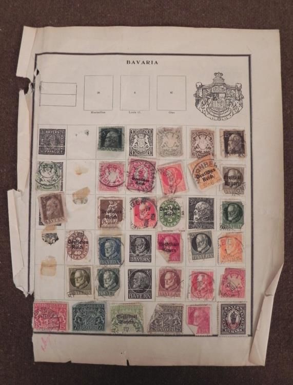 PAGE OF OLD BAVARIAN STAMPS * PRE-WWII *