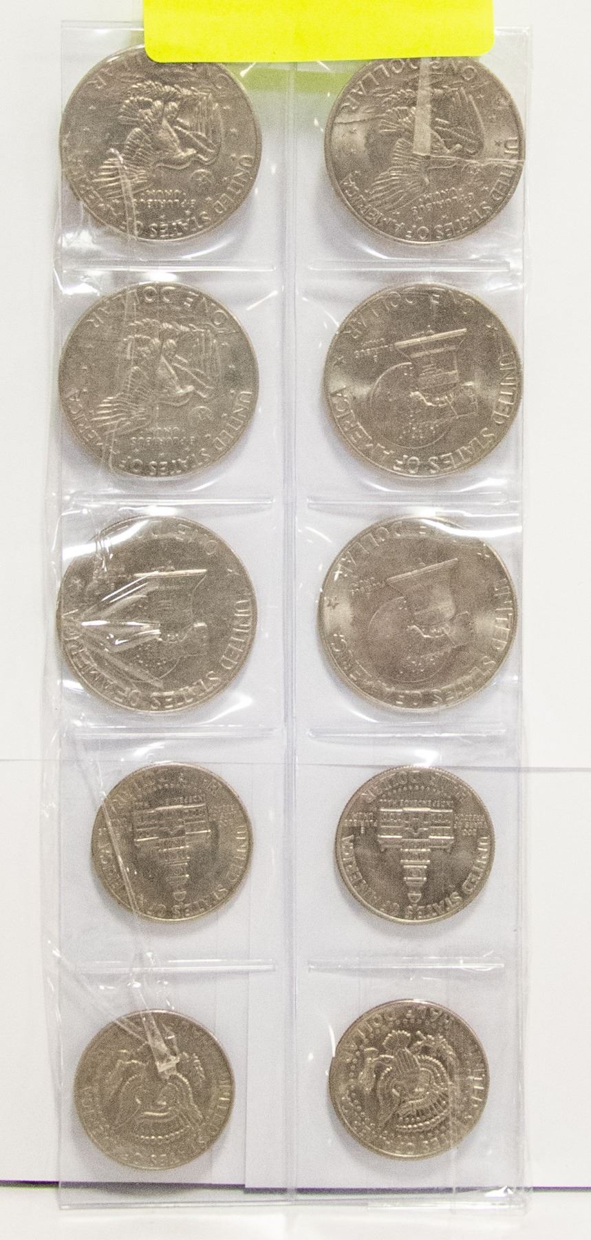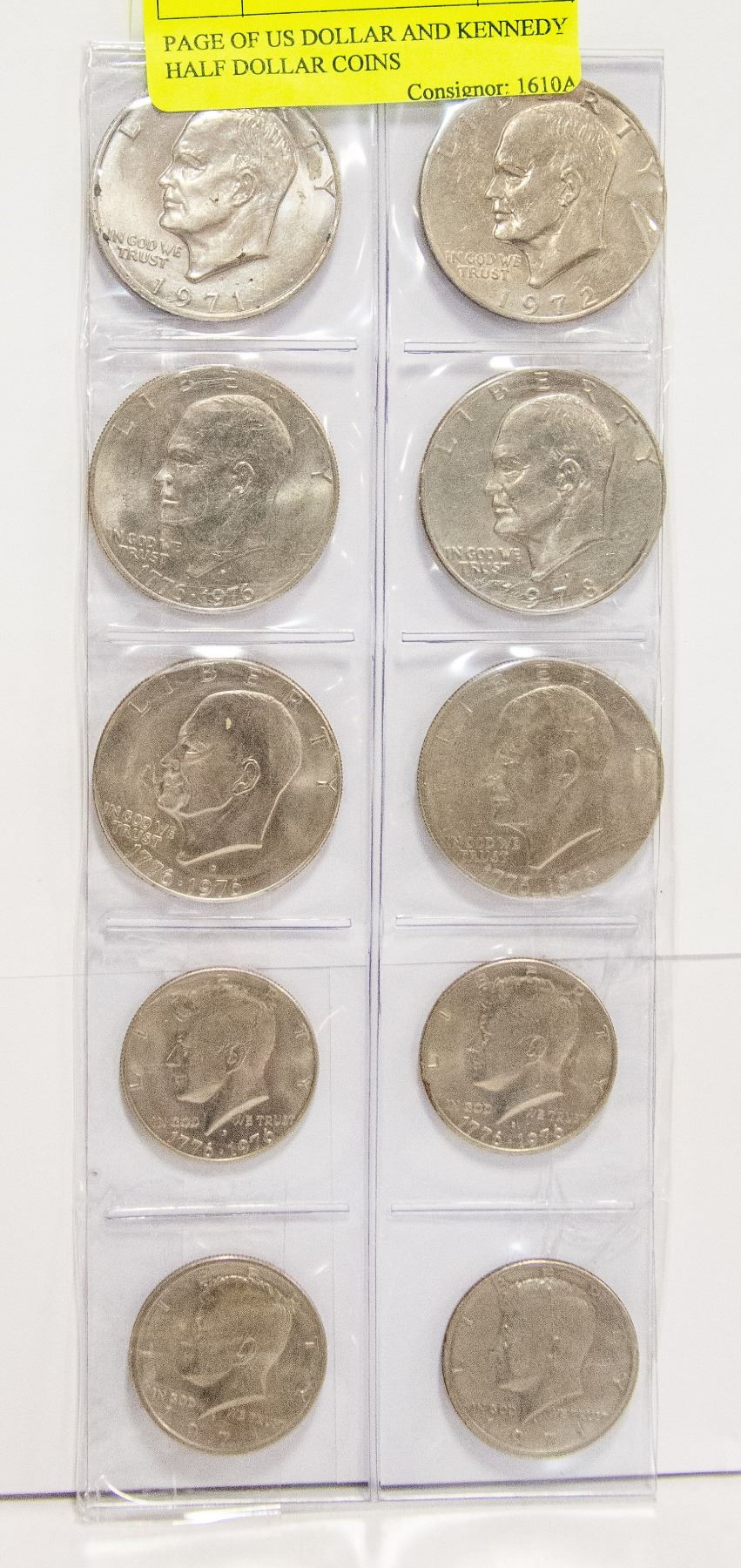 PAGE OF US DOLLAR AND KENNEDY HALF DOLLAR COINS