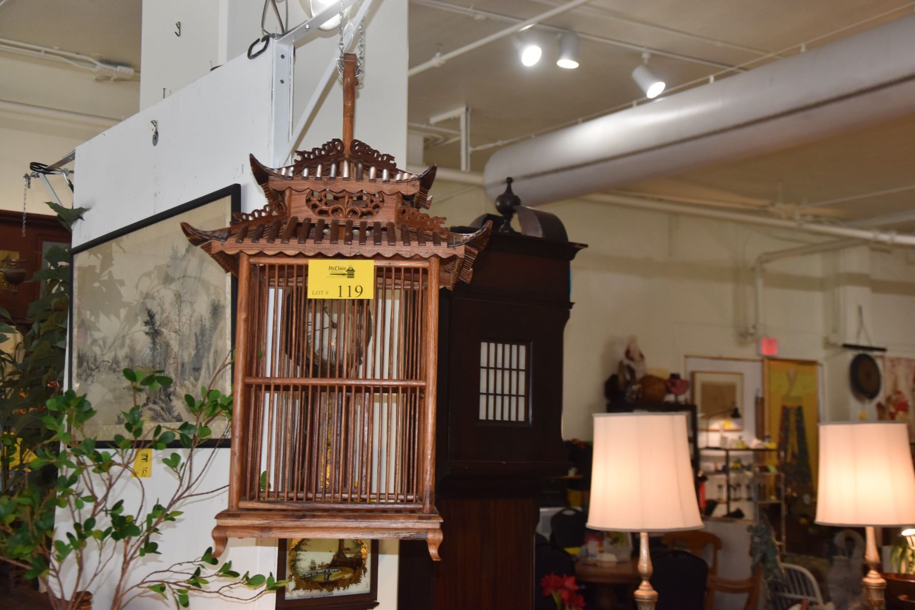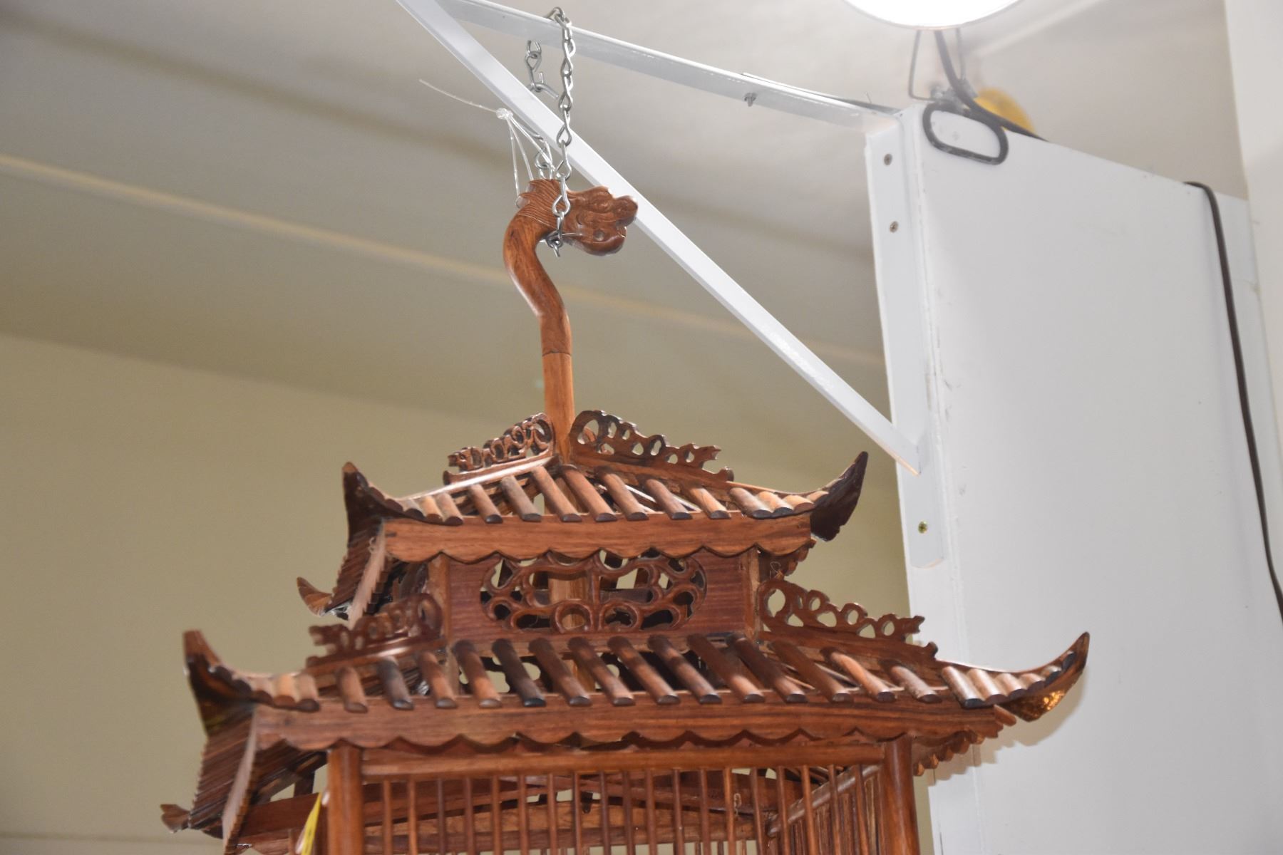 PAGODA STYLE ELM WOOD BIRD CAGE