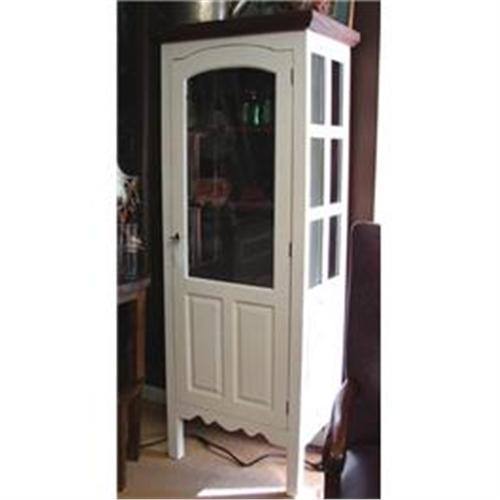 TERRIFIC FORM AND SHAPE... SOLID WALNUT... DOOR OPENS TO SHELVING INSIDE... SKELETON KEYED LOCK WITH KEY...PLENTY OF ROOM AND SPACE... IN GREAT CONDITION... THESE PIECES ARE GETTING HARDER TO FIND! THIS PIECE WOULD MAKE A LOVELY LINEN CABINET, ARMOIRE, BOOKCASE. OR DISPLAY YOUR FINEST CHINA IN THIS CABINET. PAINTED WHITE ON THE EXTERIOR, STAINED WALNUT TO THE INTERIOR...PLEASE EMAIL US FOR AN ESTIMATED SHIPPING PRICE AND DON'T FORGET TO CHECK OUT OUR 400+ ITEMS LISTED!