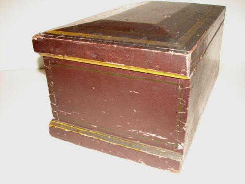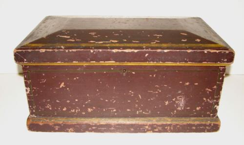 PAINT DECORATED DOVETAILED DOCUMENT BOX. Retains original brown and yellow paint. Shows some signs of wear and loss to paint. 7” H, 14.5” L, 8.75” D