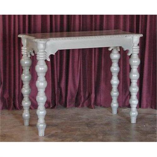 PAINTED MAHOGANY PIECE IN LIGHT GRAY PAINT.