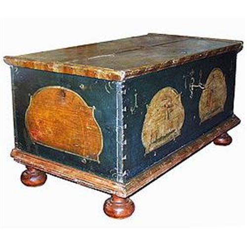 <tr><td>Title:PAINTED BLANKET CHEST DATED 1791 FIGURAL DECOR</td></tr>