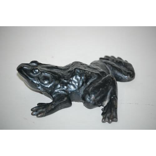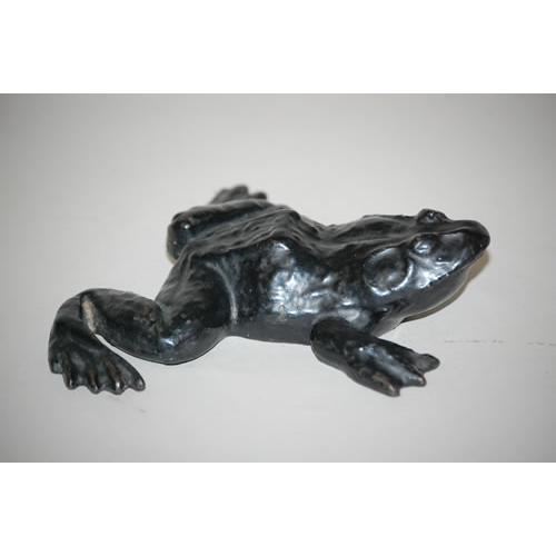 PAINTED CAST IRON FROG DOORSTOP - EARLY 20TH CENT. BLACK PAINTED FIGURAL CAST IRON FROG DOORSTOP (7 1/2" L X 7 1/2" W) - WEAR, MINOR PAINT LOSS, IMPERFECTIONS