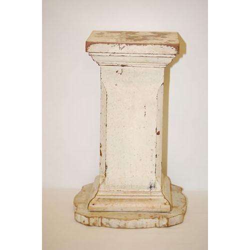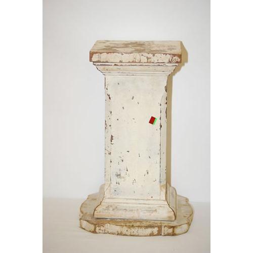 PAINTED FOLK ART WOODEN PEDESTAL W/ SQUARE TOP, CHAMFERED COLUMN, SHAPED BASE & MOLDINGS IN WHITE PAINT (19 1/2" T X 12 3/4" W) - WEAR, PAINT LOSS, IMPERFECTIONS