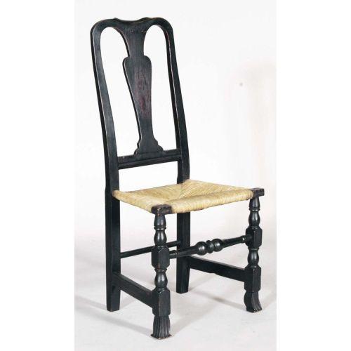 1 PAINTED QUEEN ANNE SIDE CHAIR with Spanish feet 18th century CONDITION REPORT: paint age questionable, seat replaced.
