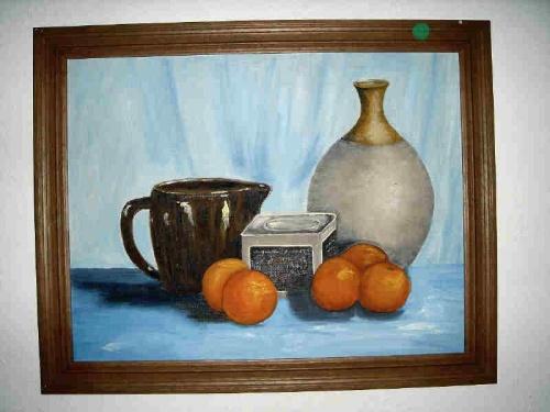 PAINTING OF FRUIT AND VASE ON CANVAS