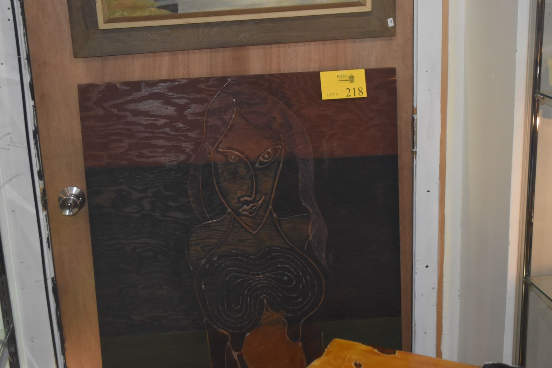 PAINTING ON PLYWOOD DEPICTING A STYLIZED FEMALE FIGURE; SIGNED (30" X 48")