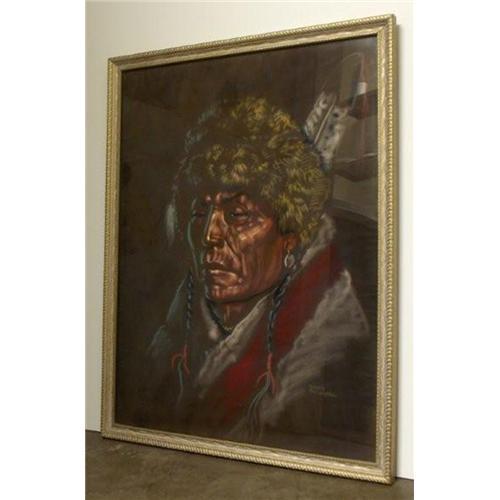 PAINTING ON VELVET: Nancy McLaughlin Powell (wife of Ace powell) portrait of an Indian presented in a simple frame. 20.5" x 26.5"