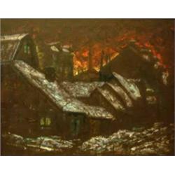 JONNY OPPENHEIMER F. 1923, OLJEMÅLNING, STADSMOTIV I SOLNEDGÅNG, 47X60, SIGN. 1968