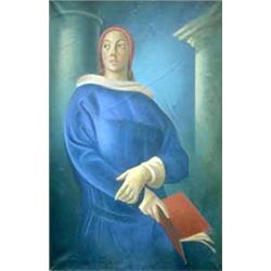 GUNNAR ZILO 1885-1958, OLJEMÅLNING, KVINNA MED BOK, SANNOLIKT UTFÖRD UNDER 1920-TALET, 155X99, SIGN. (KRACKELYRER)