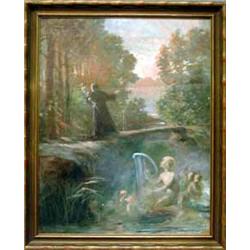VILHELM HOLMGREN 1863-1943, OLJEMÅLNING, NÄCKEN OCH PRÄSTEN EFTER GUNNAR WENNERBERGS DIKT, 44X35