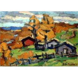 EDVIN BODIN 1898-1965, OLJEMÅLNING, HÖST FÄBODVALL TÄNNDALEN, 23X32, SIGN. 1951