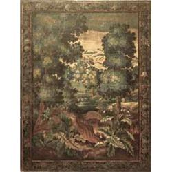 OLJEMÅLNING, FÖRLAGA TILL GOBELÄNG, DEKOR AV FÅGLAR, TRÄD OCH BLAD I FLODLANDSKAP, 17/1800-TAL, 200X155