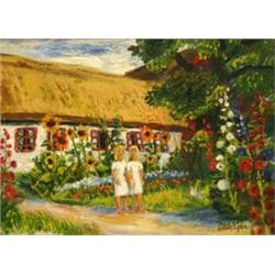 GÖSTA NYRÉN 1903-1973, OLJEMÅLNING, FLICKOR I BLOMSTERPRAKT, SIGN. 39X54