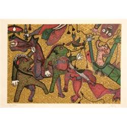 ENRICO BAJ F. 1924, FÄRGLITOGRAFI, "GUERNICA" SIGN. 128/250, 70X99