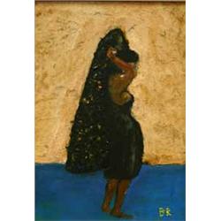 BERNDT RINGQVIST 1917-1966, OLJEMÅLNING, "MANTILLAN" OMKR. 1960, MONOSIGN. 1960, 24X17