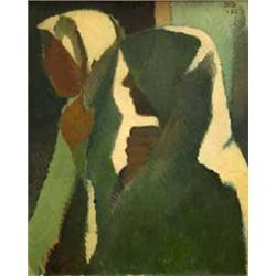 GUNNAR ZILO 1885-1958, OLJEMÅLNING, KVINNOR I DOK, SIGN. 1950, 60X50