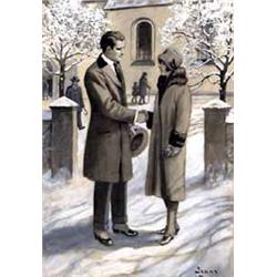 JENNY NYSTRÖM 1854-1946, TUSCH MED TÄCKVITT, AVSKED EFTER HÖGMÄSSAN, SIGN. 25X17