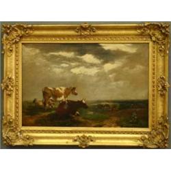 C. WASTHON, OKÄND ENGLESK KONSTNÄR, OLJEMÅLNING, KOR I SOMMARLANDSKAP, SIGN. 40X60
