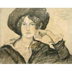 STANISLAW WITKICWICZ- WITKACY 1885-1939, POLSK KONSTNÄR, PASTELL, KVINNLIG MODELL, SIGN ZAKOPANE, TEXT INITIALER SYFTANDE PÅ VILKA DROGER HAN ANVÄNDE VID KONSTVERKETS TILLBLIVELSE, 53X66