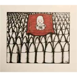EWERT KARLSSON, EWK, AKVARELL OCH TUSCH, GOTT NYTT ÅR 1986, SIGN. 1986, 40X50