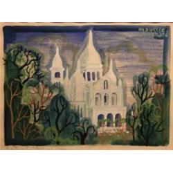 MAURICE BLANCHARD F. 1903, AKVARELL, PARISMOTIV MED SACRE QUER KYRKAN