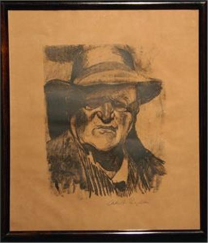 ALBERT ENGSTRÖM 1869-1940, LITOGRAFI, PORTRÄTT AV XYLOGRAFEN KARL ANDERSSON, SIGN. 34X25