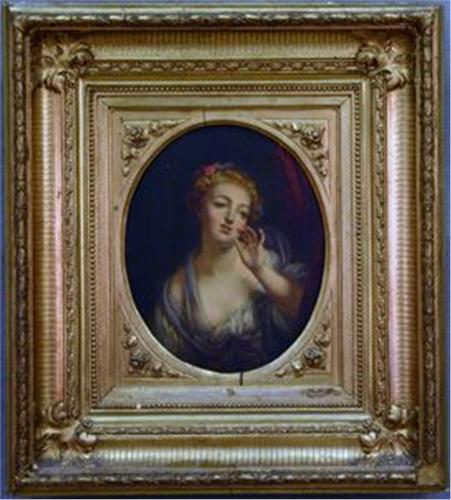 OKÄND KONSTNÄR, TROLIGEN FRANSK, ANTIK OLJEMÅLNING, ROKOKODAM, 22X18