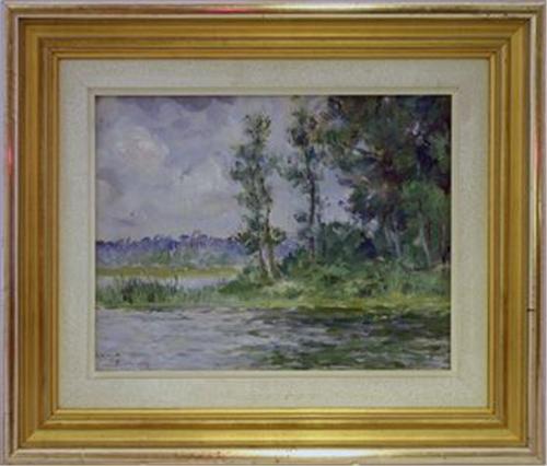ERIK TRYGGELIN 1878-1962, OLJEMÅLNING, RÅSKASJÖN, RÅSUNDA, SIGN. 1913, 17X23
