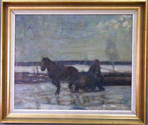 HUGO CARLBERG 1880-1943, OLJEMÅLNING, "TÖVÄDER", SIGN. 55X66 (SMÄRRE KRACKELYR)