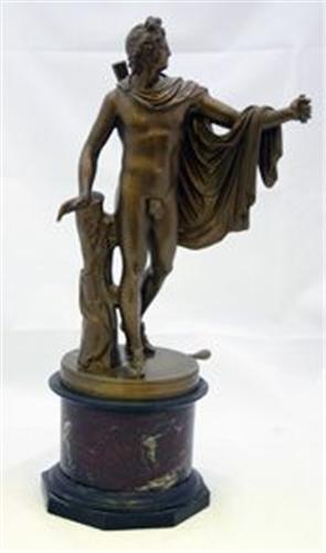 SKULPTUR, BRONS, APOLLO DEL BELVEDERE, MARMORSOCKEL, EMPIR, ITALIEN 1800-TALETS FÖRSTA HÄLFT, H34