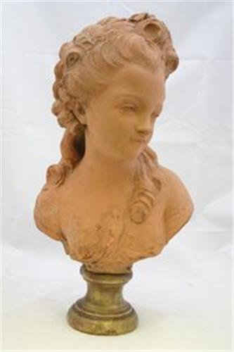 OKÄND KONSTNÄR, TERRAKOTTA PÅ STENSOCKEL, BYST AV UNG FLICKA, OTYDLIG SIGN. , ROKOKOSTIL, H50