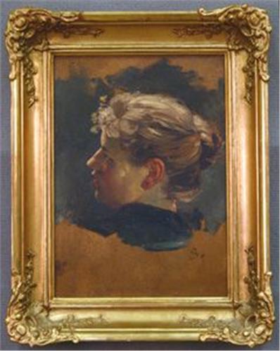 RICHARD BERGH 1858-1919, OLJEMÅLNING, KVINNOPORTRÄTT, MONOSIGN. -89, ATERGO ANTECKNINGAR, 33X23