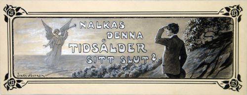 JENNY NYSTRÖM 1854-1946, TUSCH MED TÄCKVITT, MAN SPEJANDE EFTER ÄNGEL, SIGN. 10X25 (ORAMAD)