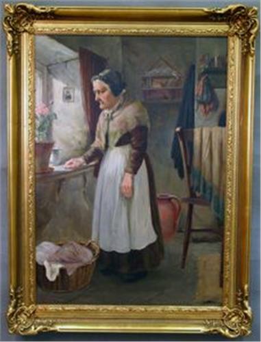 DAVID WILLIAM HADDON 1827-88, OLJEMÅLNING, "WATCHING THE STORM", SIGN. 87X61