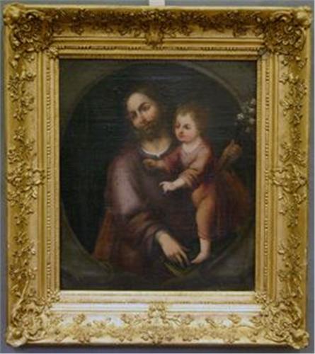 OKÄND KONSTNÄR, ANTIK OLJEMÅLNING, C. 1700, JOSEF MED JESUSBARNET, 60X52
