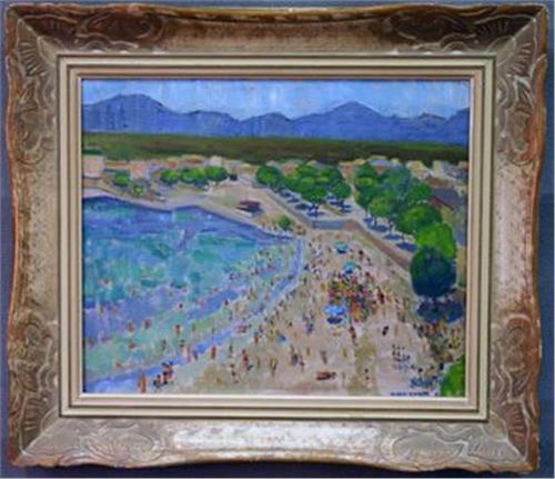 LEOPOLD FARE, OLJEMÅLNING, BADANDE PORTO CRISTO, SIGN. 1950, 38X44