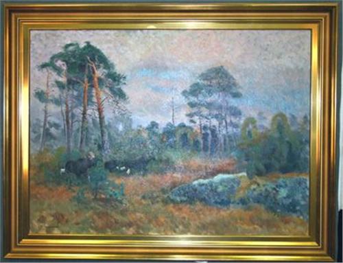 HARALD GRENNARD F 1919, OLJEMÅLNING, ÄLGAR I TALLSKOG, SIGN. 74X99