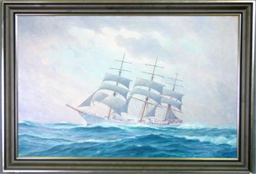 TITUS WIKSTRÖM F 1887, OLJEMÅLNING, SEGELFARTYG, SIGN. 1935, 59X90