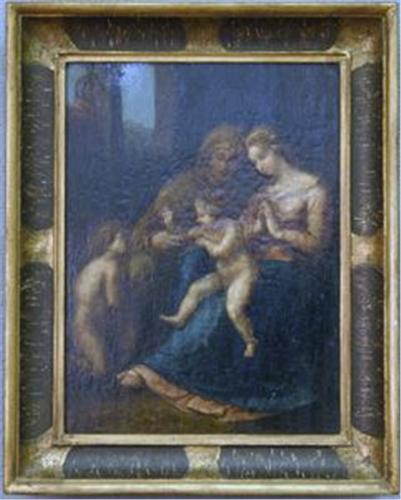 OKÄND KONSTNÄR, ANTIK OLJEMÅLNING, 1700-TAL MARIA, ELISABETH OCH JOHANNES SOM OMGER JESUSBARNET, 28X20